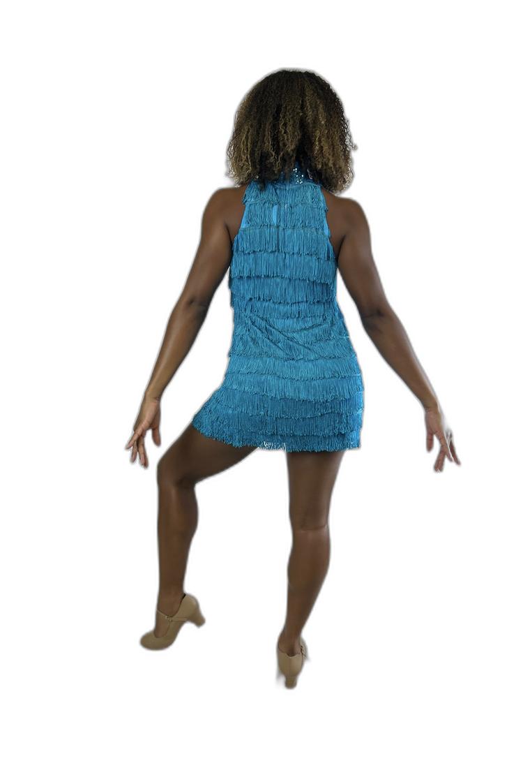 - Turquoise fringe dress with layered design